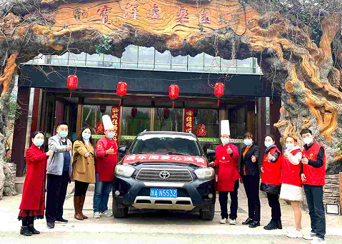 陜西省寶雞市眉縣寶深逸樂生態園不忘初心牢記使命,發展不忘回饋社會。  在眉縣新冠肺炎疫情進入緊急防備狀態下,應防疫要求寶深逸樂生態園暫停營業,但是該生態園總經理林永清組織了企業內部20名員工成立了志愿者團隊,每天為眉縣高速路口執勤點、眉麟路執勤點、余管營執勤點、眉縣榮華路機關幼兒園執勤點、眉縣景賢社區執勤點的工作人員送上熱氣騰騰的愛心餐。(李寧娟)