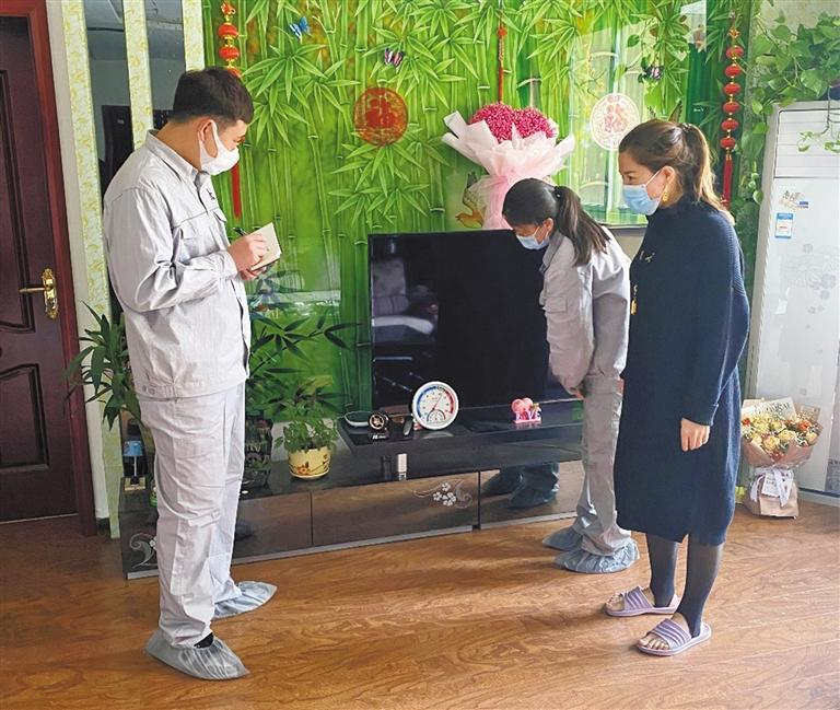 11月12日,中石化綠源地熱能(陜西)開發有限公司工作人員走進興平市金城嘉苑小區居民家中查看室溫,了解供暖需求。受訪者供圖