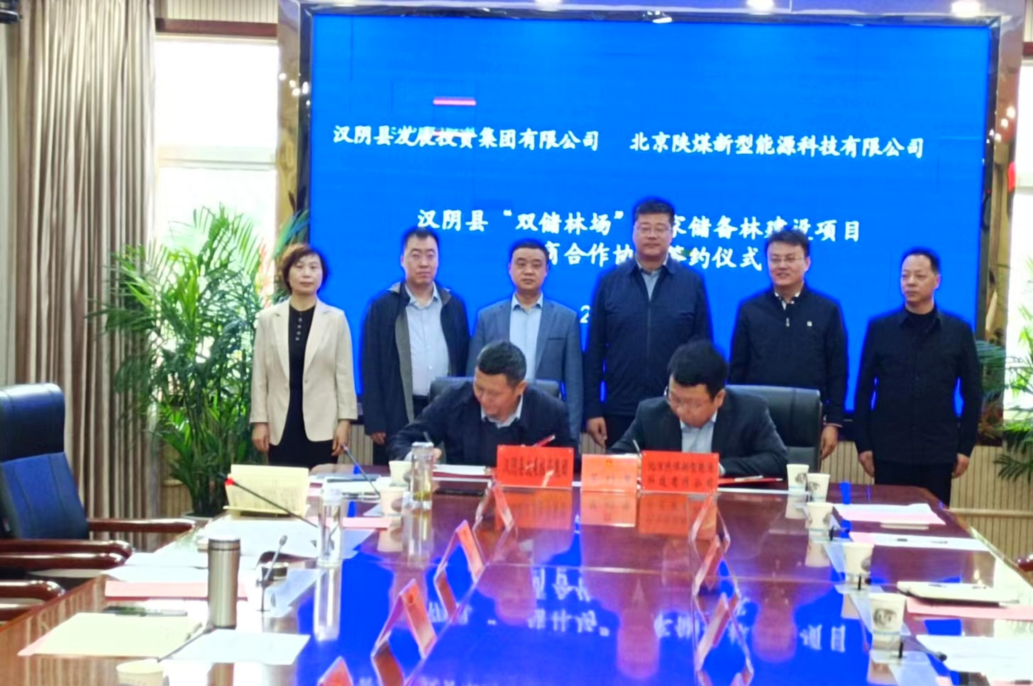 漢陰縣發展投資有限公司和北京陜煤新型能源科技有限公司代表甲乙雙方簽訂項目《招商合作協議》。簽約儀式由副縣長王俠軍主持,縣林業局局長介紹項目情況。北京陜煤新能源科技有限公司項目團隊和縣有關部門負責人等參加簽約活動。