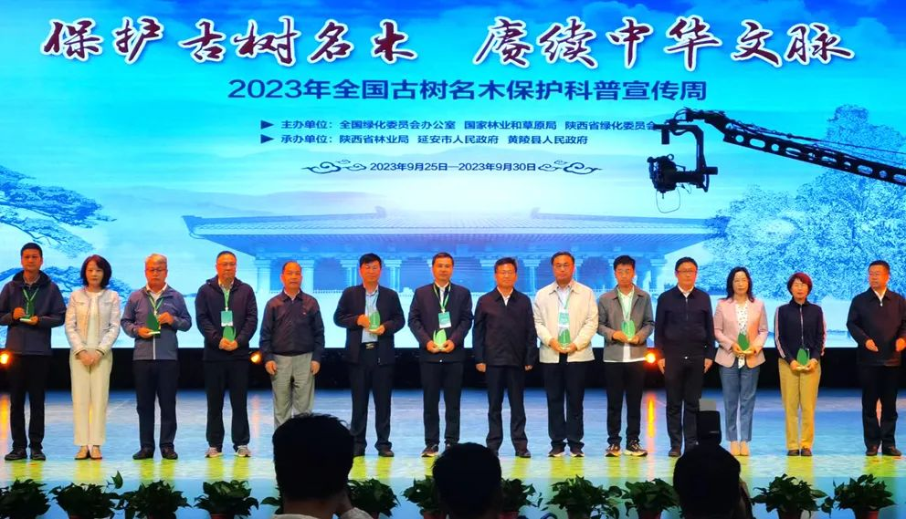 9月25日,以“保護古樹名木賡續中華文脈”為主題的2023年全國古樹名木保護科普宣傳周在陜西省延安市黃陵縣啟動。啟動儀式上,上線了全國古樹名木智慧管理系統,發布了“雙百”古樹推選結果,向全社會發起保護古樹名木的倡議。