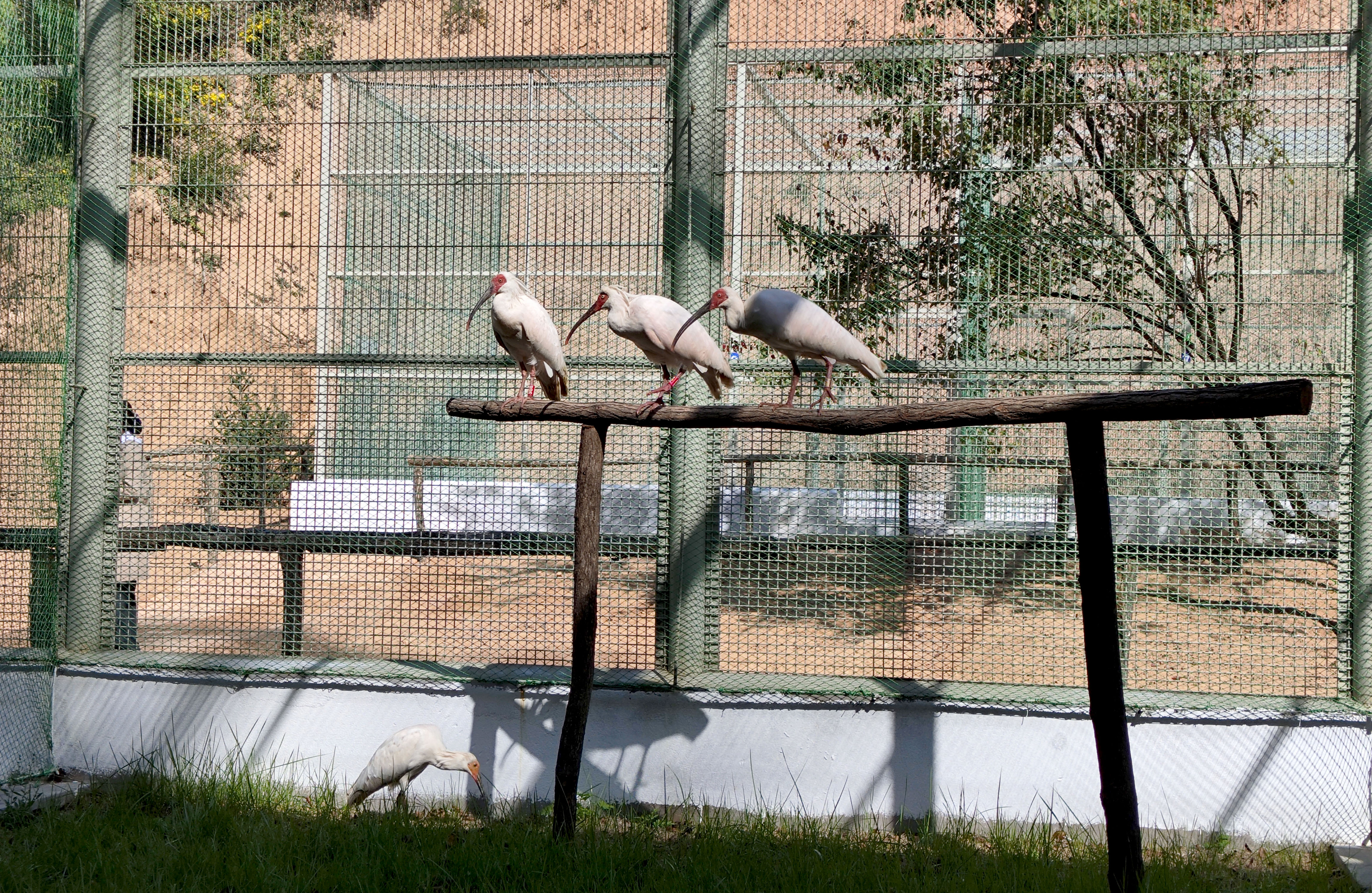 來自陜西漢中朱鹮國家級自然保護區管理局的朱鹮在南泥灣“新家”休憩