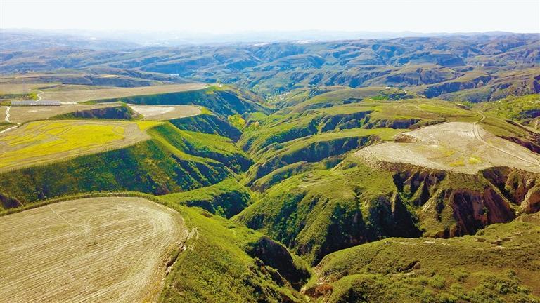 經過生態治理修復,三道溝煤礦生態環境得到有效改善。圖為記者日前航拍的高標準農田。