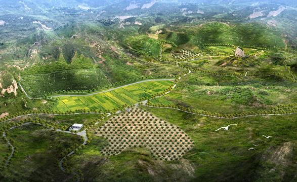 合陽縣黃河西岸分布有多個露天開采的砂石場,由于采砂導致地形地貌景觀及植被遭到嚴重破壞,占壓和損毀了土地資源,制約了黃河流域生態保護和高質量發展。2020年,合陽縣投資4704.17萬元,開展合陽縣黃河西岸礦山生態修復工程,以“工程生態化、生態產業化、產業家園化”的“三化理念”,將生態文明建設與鄉村振興戰略有效結合,打造“生態修復+農旅支撐+鄉村振興+產業扶貧”的生態產業鏈,實現礦區土地再利用。