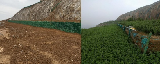 冀東海德堡(涇陽)水泥有限公司蔡家溝礦區水泥用灰巖礦綠色礦山建設項目,積極探索邊坡治理技術,先后采用多種施工工藝,有效改善礦區生態環境;重視土壤改良,為增加巖層土壤覆蓋后養分供給,通過購買農家有機肥用于綠化;勇于探索,重視新工藝的引進,始終將礦山開采和環境保護工作進行融合,切實做到“邊開采、邊治理”。