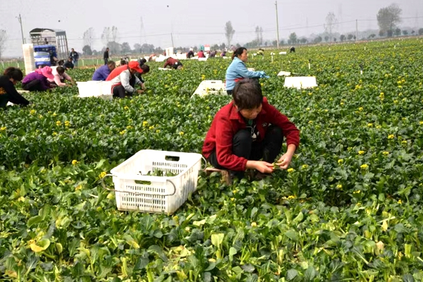 據了解,河南瑞彩農業科技有限公司以孫彰村為中心,流轉土地2000畝發展蔬菜產業,輻射周邊5個行政村,主要種植6大類新鮮蔬菜,核心產品為優質廣東菜心,日產量達5萬斤。