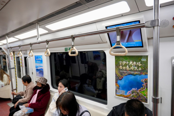 西安地鐵2號線車廂內展示的“秦嶺生態環境保護”宣傳海報
