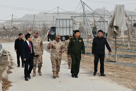 山西省臨汾軍分區領導閆天兵(右二)赴大寧縣視察“兵支書”模式賦能的鄉村振興產業。
