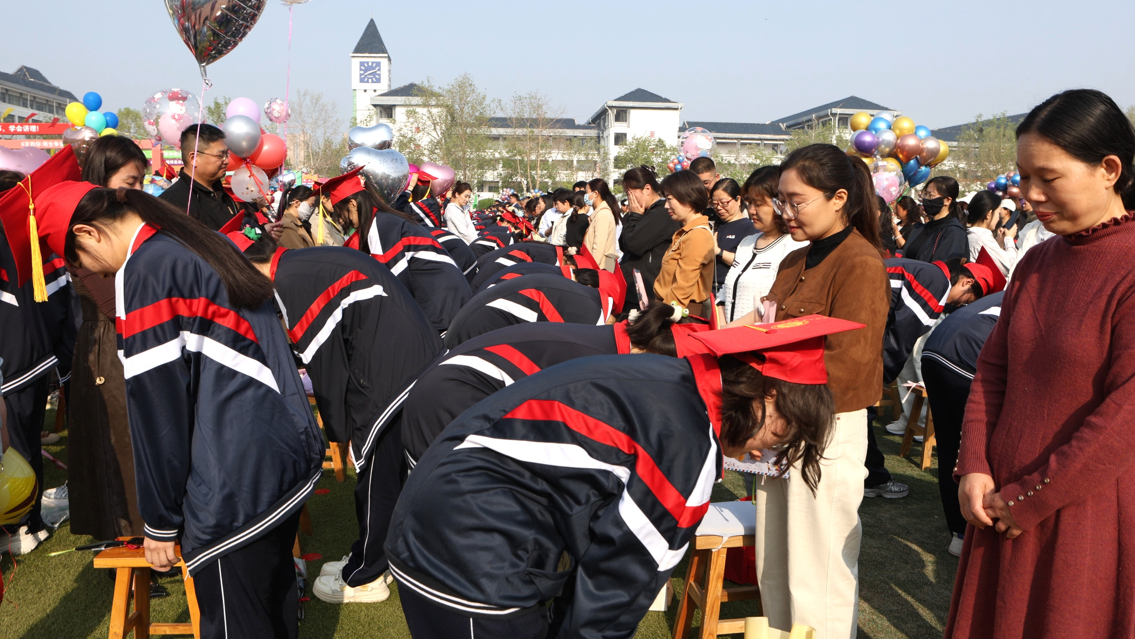 成人禮中,最令人動容的當屬父母為學生冠戴成人帽、孩子向父母行三躬加冠禮的環節?!抖Y記》有言:“冠者,禮之始也?!边@一傳承千年的成人儀式,在菏澤一中的校園里重現。當父母親手為孩子戴上成人帽,眼中滿是欣慰與期許;孩子們深深鞠躬,以三躬之禮,向父母表達十八年養育之恩的感激?,F場不少家長與孩子相擁而泣,無聲的擁抱中飽含著千言萬語。