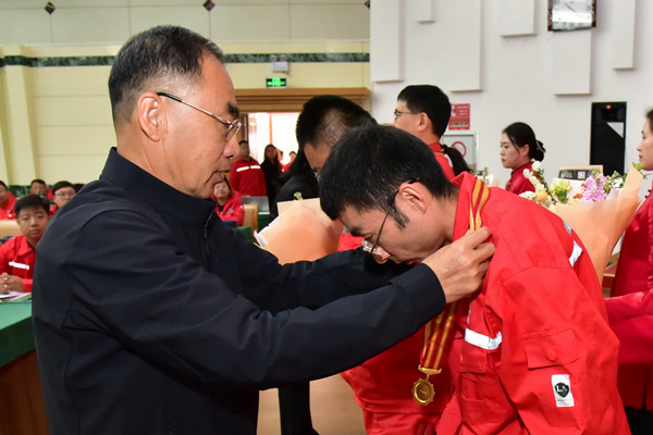 代旭升還為年度油田勞動模范頒發了獎章,激勵年輕一代用實際行動踐行勞模精神、勞動精神和工匠精神。(供稿人:張勝剛董吉寧勝利油田東辛采油廠)