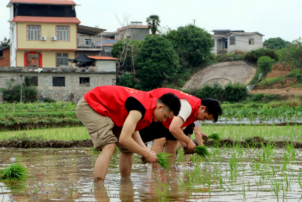 “大家分為清淤組、清掃組、插秧組,和村民志愿者一起行動,把我們的干勁拿出來……”在廣西荔浦市花篢鎮五四青年志愿服務活動現場,組織人員對大家進行了分工。為弘揚五四精神,花篢鎮聯合團荔浦市委、花篢鎮農商行、大同村黨支部等單位,于4月21日組織60余名青年志愿者走進千萬工程建設點--大同村,開展助力春耕生產及千萬工程等志愿服務活動,以實際行動奏響新時代青年服務“三農”的奮進強音。