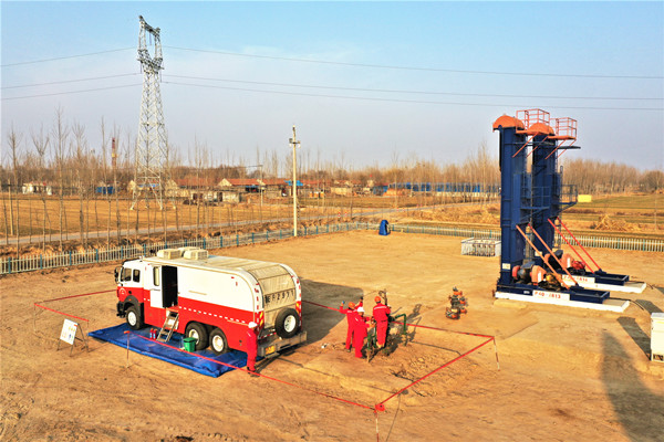 在一采油井場,物探施工車轟鳴作響,中國石化具有自主知識產權的I-DAS系統,正在井口采集資料。
