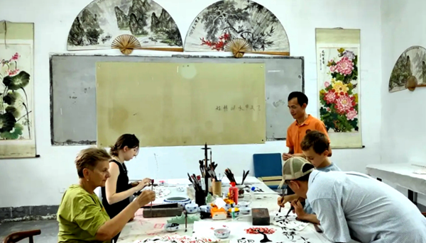 外國友人正在學習繪畫。陽朔縣融媒體中心供圖