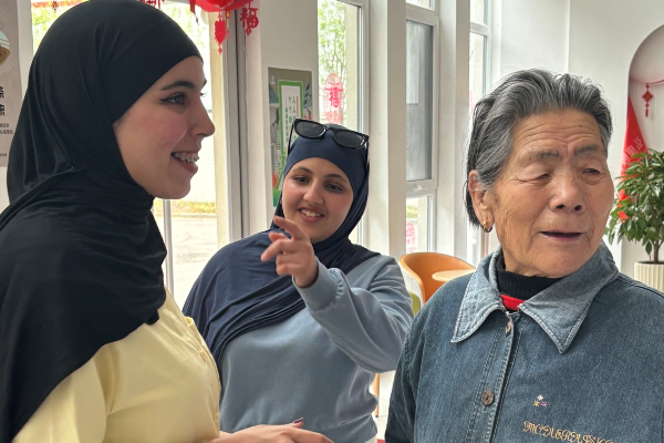 參觀學習后,留學生們與養員老人們在養護院活動室進行了親切互動,現場氣氛熱烈,頤養中心老人們的臉上洋溢著喜悅幸福的笑容?;咏Y束后,留學生們與老人們進行了親切交談,傾聽老人們年輕時的故事,敬仰之情溢于言表。老人們對留學生們殷切囑咐道:“你們來自世界各地,不遠萬里來到中國學習,希望你們在學習專業知識的同時也能多學習了解博大精深的中國文化。并希望將來你們學成后,能將你們在中國的所見所聞告訴更多的人,促進中外交流”。