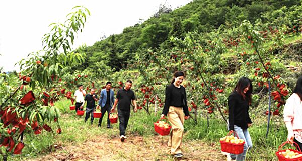童家生態農場處在連綿起伏的群山之上,這里地勢高,日照強,晝夜溫差大,土壤肥沃,獨特的地理和氣候條件為桃類生長提供了得天獨厚的環境。為保障桃子品質,基地一直雇用當地村民進行人工除草,施用有機肥等生態方式進行科學管理。目前,農場共種植了黃金蜜1號和金黃金黃桃,以及新華梨等水果50余畝。