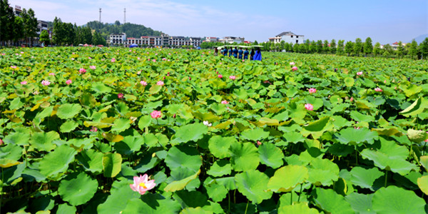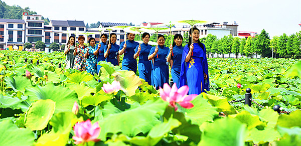 夏日荷花始盛開,扮靚鄉村帶火旅游。(孫詠梅攝)