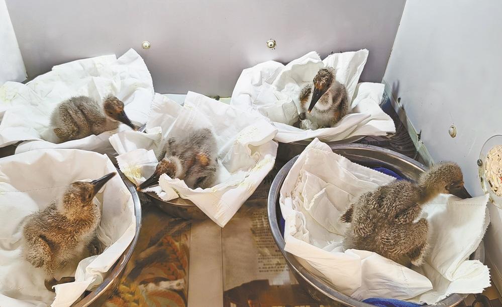 (圖為保溫箱里的5只朱鹮寶寶。受訪單位供圖)