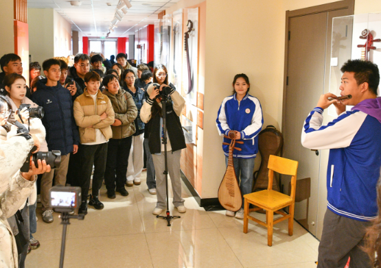 近日,山西師范大學音樂舞蹈綜合樓內的“音樂思政教育體驗區”,成為思政育人與藝術熏陶的生動課堂。李璿老師為體育學院大一新生解讀《沒有共產黨就沒有新中國》等經典樂曲的時代內涵,音樂學院學生則以琵琶演奏、笛聲悠揚與傣族舞教學,讓新生在沉浸式體驗中感悟紅色精神。