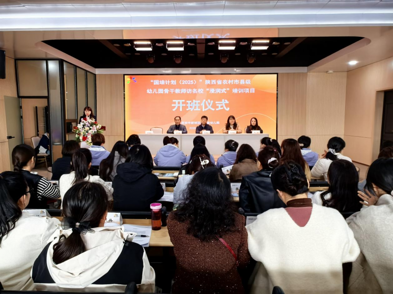 近日,由陜西省教育廳主辦、西安市新城區大明宮幼兒園承辦的陜西省2025年“國培計劃”--農村市縣級幼兒園骨干教師訪名?!敖櫴健迸嘤栱椖块_班儀式在幼兒園多功能廳舉行。此次研修聚焦幼兒園園本課程建構與實施,旨在通過系統的理論指導與實踐賦能,幫助幼兒園骨干教師提升園本課程建構力、實施力與評價力,以適配新時代學前教育“幼有優育”發展要求,為陜西省學前教育普及普惠、安全優質發展注入新動能。
