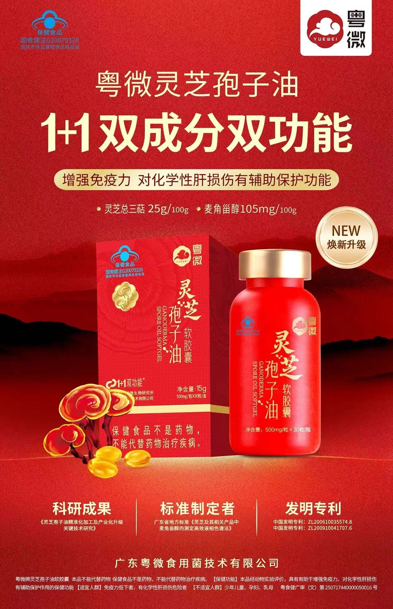 其明星產品靈芝孢子油軟膠囊,每100g含靈芝三萜25g、麥角甾醇105mg,憑借其雙成分雙功能的卓越品質,榮獲國際發明金獎,更被評為廣東省名優高新技術產品,還成功入選第136屆廣交會“首批廣州必購必帶”城市禮物名單。