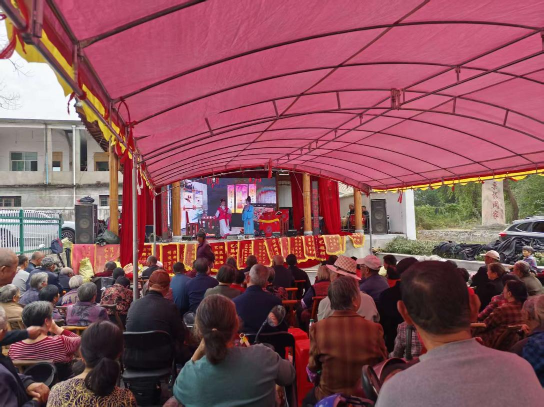 重陽節敬老愛老,搭臺唱戲是村里的傳統。今年,新建成的戲臺迎來了它的“首秀”。村里特意邀請了深受群眾喜愛的本地黃梅戲劇團,連唱三天大戲?!杜€馬》《天仙配》等經典劇目輪番上演,吸引了全村及周邊村莊的大量群眾前來觀看。