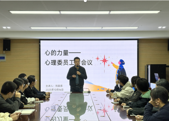 武劍副校長還對同學們提出三點期望:一是端正態度,正確看待工作性質;二是主動學習技能,提升服務能力;三是及時反饋特殊情況,同時在服務中保護自己、平衡學習與工作。緊接著,劉美辰老師以“心的力量”為主題,圍繞“心理委員的角色定位,工作內容與方法”展開培訓。在角色定位上,她先糾正了“只是偶爾聊天”“是老師的間諜”等認知偏差,明確心理委員的核心職責是為同學提供心理健康幫助、協助開展班級心理健康活動,并將角色概括為觀察者、傾聽者與支持者、助手。劉老師指出心理委員在工作內容上,需重點關注同學的學業壓力、人際矛盾、情緒波動等常見問題,及時發現異常信號;在工作方法上,要遵循“主動關心—耐心傾聽—及時報告”的流程,既不擅自給同學“貼心理標簽”,也不獨自承擔超出能力范圍的心理困擾解決任務。她強調心理委員的“自我關懷”,提醒大家守好邊界,做好學生工作與個人生活的平衡。